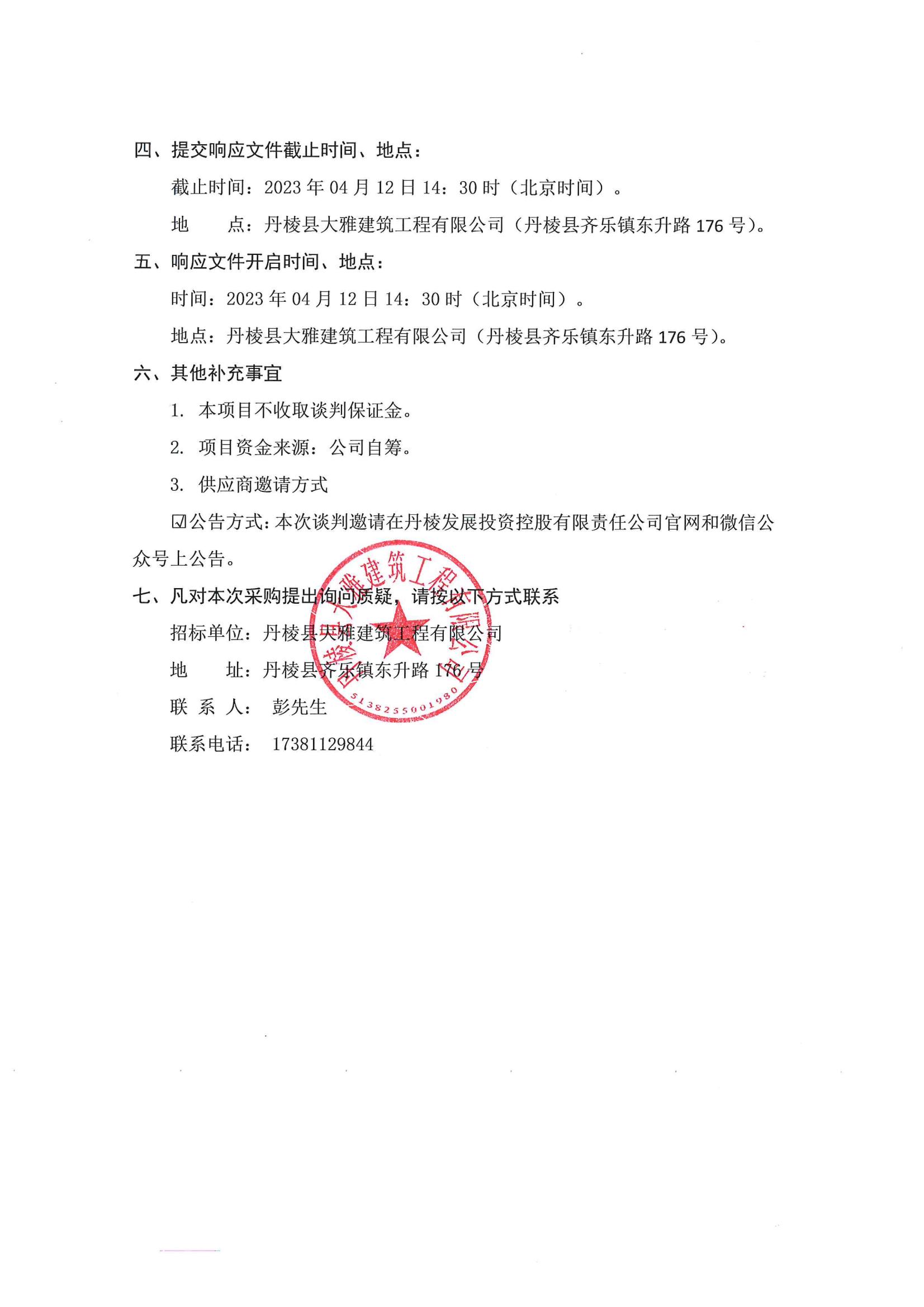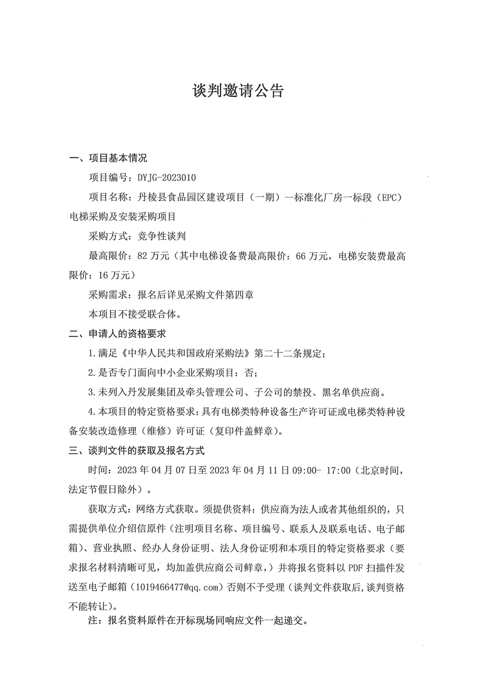 丹棱縣食品園區(qū)建設項目(一期)--標準化廠房一標段(EPC)電梯采購及安裝采購項目談判邀請公告