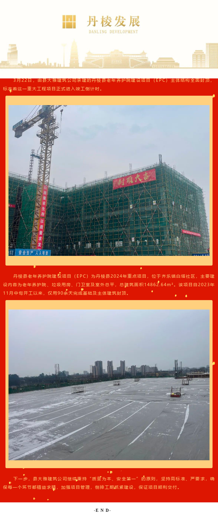 【縣大雅建筑公司】扎實推進“民心工程”,丹棱縣老年養(yǎng)護院項目順利封頂