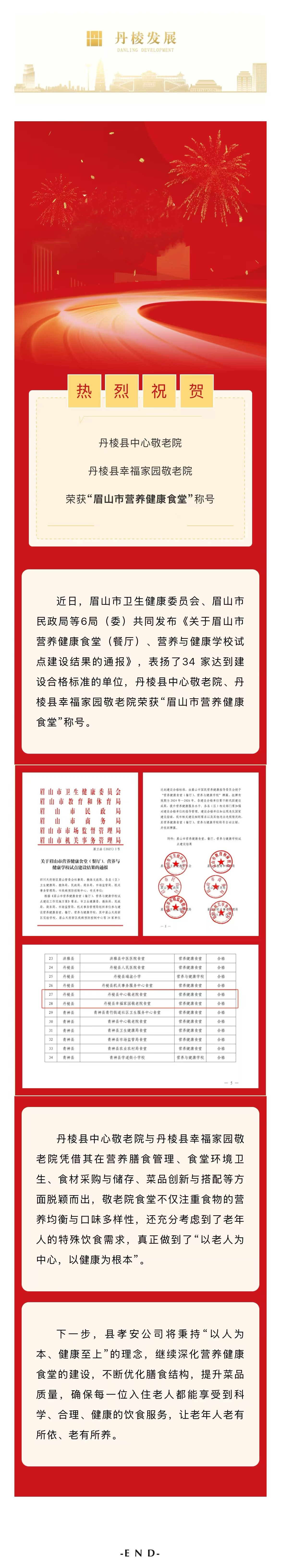【縣孝安公司】喜報(bào)!丹棱縣中心敬老院、丹棱縣幸福家園敬老院榮獲“眉山市營(yíng)養(yǎng)健康食堂”稱號(hào)