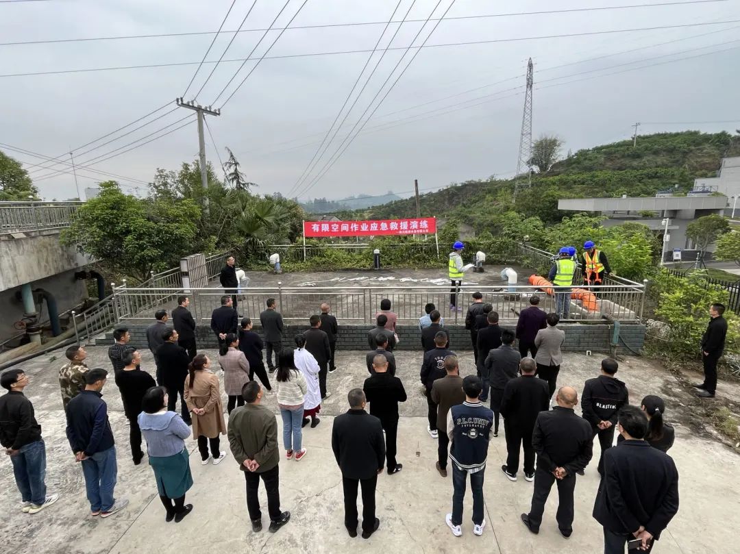 為有效防范有限空間作業(yè)安全生產(chǎn)事故,提高員工的應(yīng)急能力,4月24日上午,四川順源水務(wù)有限公司組織全體員工在丹棱縣仁美水廠開展了有限空間作業(yè)應(yīng)急救援演練,縣國資金融局領(lǐng)導現(xiàn)場指導演練工作。