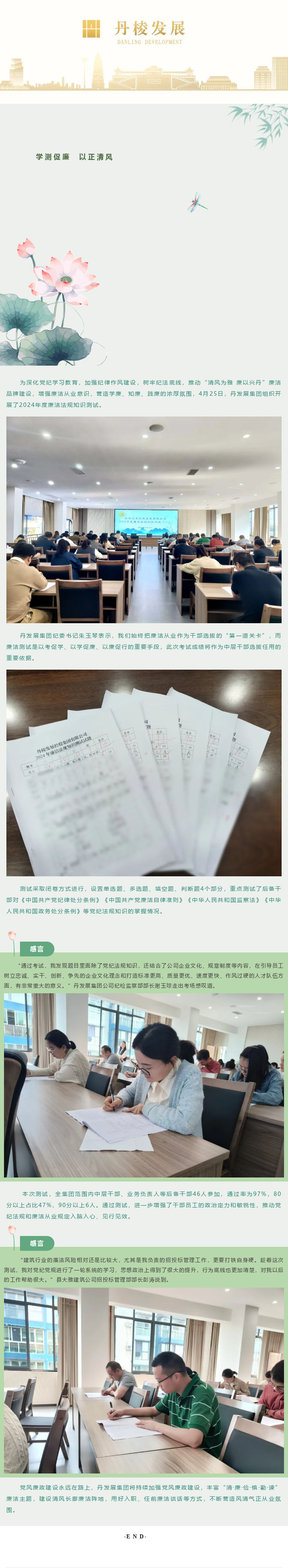 學(xué)測(cè)促廉 以正清風(fēng) | 丹發(fā)展集團(tuán)開(kāi)展2024年度廉潔法規(guī)知識(shí)測(cè)試