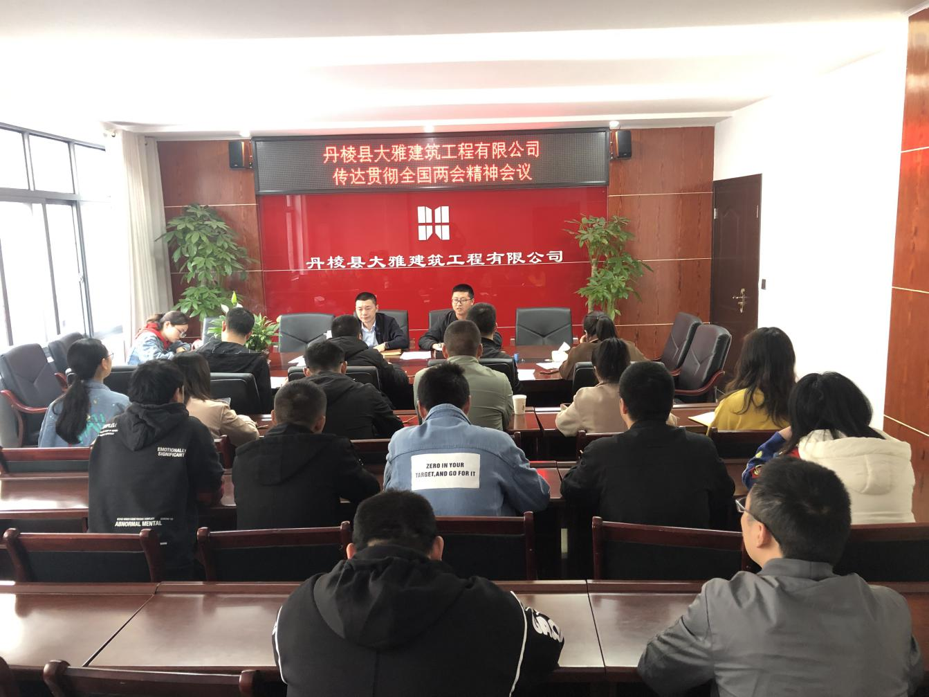 近日,丹棱縣大雅建筑工程有限公司召開(kāi)傳達(dá)貫徹全國(guó)兩會(huì)精神會(huì)議,公司董事長(zhǎng)主持會(huì)議,全體黨員和干部職工參加。